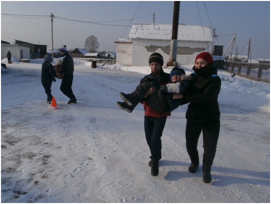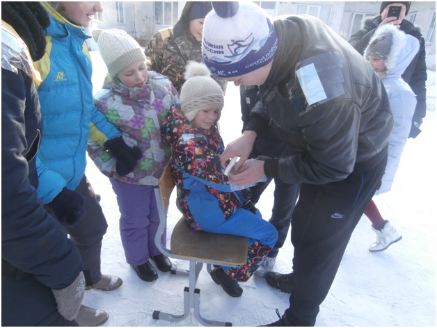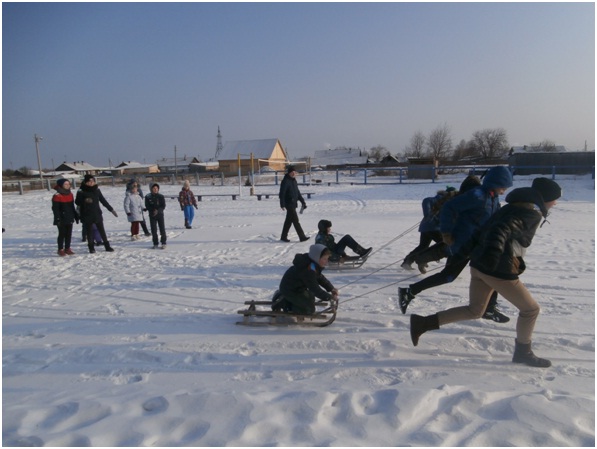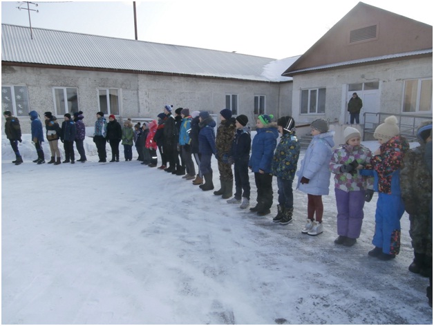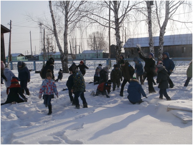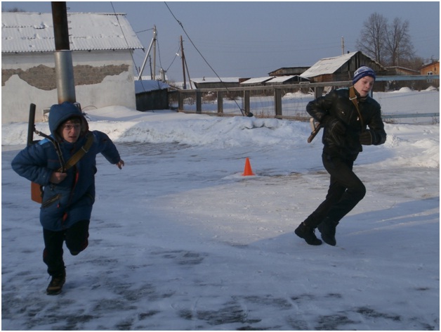 Перед началом игры командиры команд сдали рапорта, прозвучали командные девизы и песни. Ведущий сообщил детям о начале военно-спортивной игры и рассказал об этапах, которые им предстоит пройти. Игра «Зарница» была проведена на свежем воздухе и построена в форме военно-спортивной эстафеты, где команды продвигались по определенному маршруту: «Санитарный пост»,«Курс молодого бойца»,«Лыжные ралли»,«Меткий гранатомётчик», «Разминируй поле». Больше всего детям понравилось задание «Разминируй поле», в котором детям предлагалось найти «мины», закопанные в снегу. В конце игры состоялся «Бой», в котором соперники срывали погоны друг у друга.